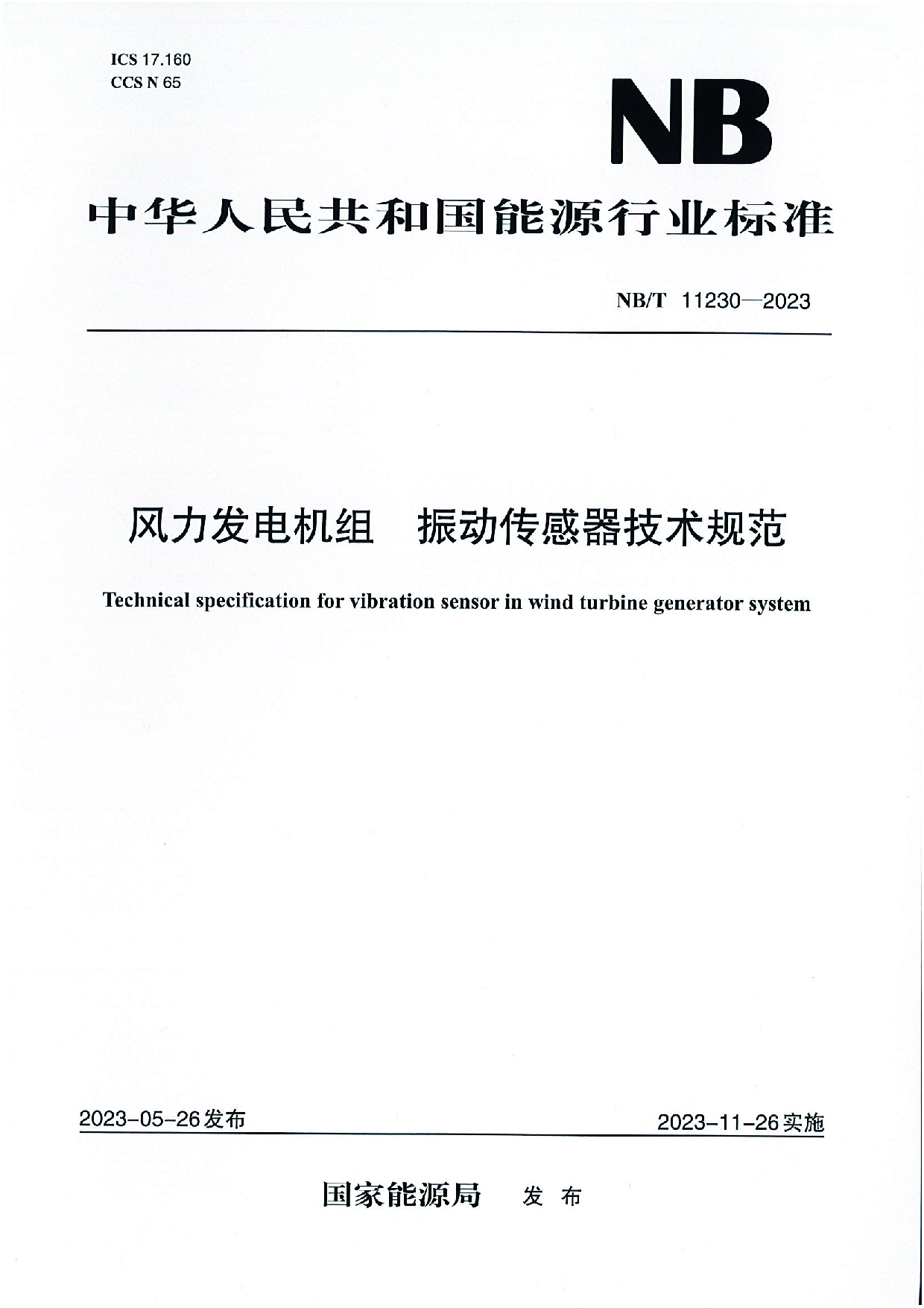 近日,國家能源局頒布了《風(fēng)力發(fā)電機(jī)組  振動傳感器技術(shù)規(guī)范》(NB/T 11230-2023)江蘇聯(lián)能電子作為參與起草單位,該規(guī)范規(guī)定了風(fēng)力發(fā)電機(jī)組振動傳感器的基本參數(shù)、技術(shù)要求、試驗(yàn)方法、檢驗(yàn)規(guī)則、包裝與貯存等。